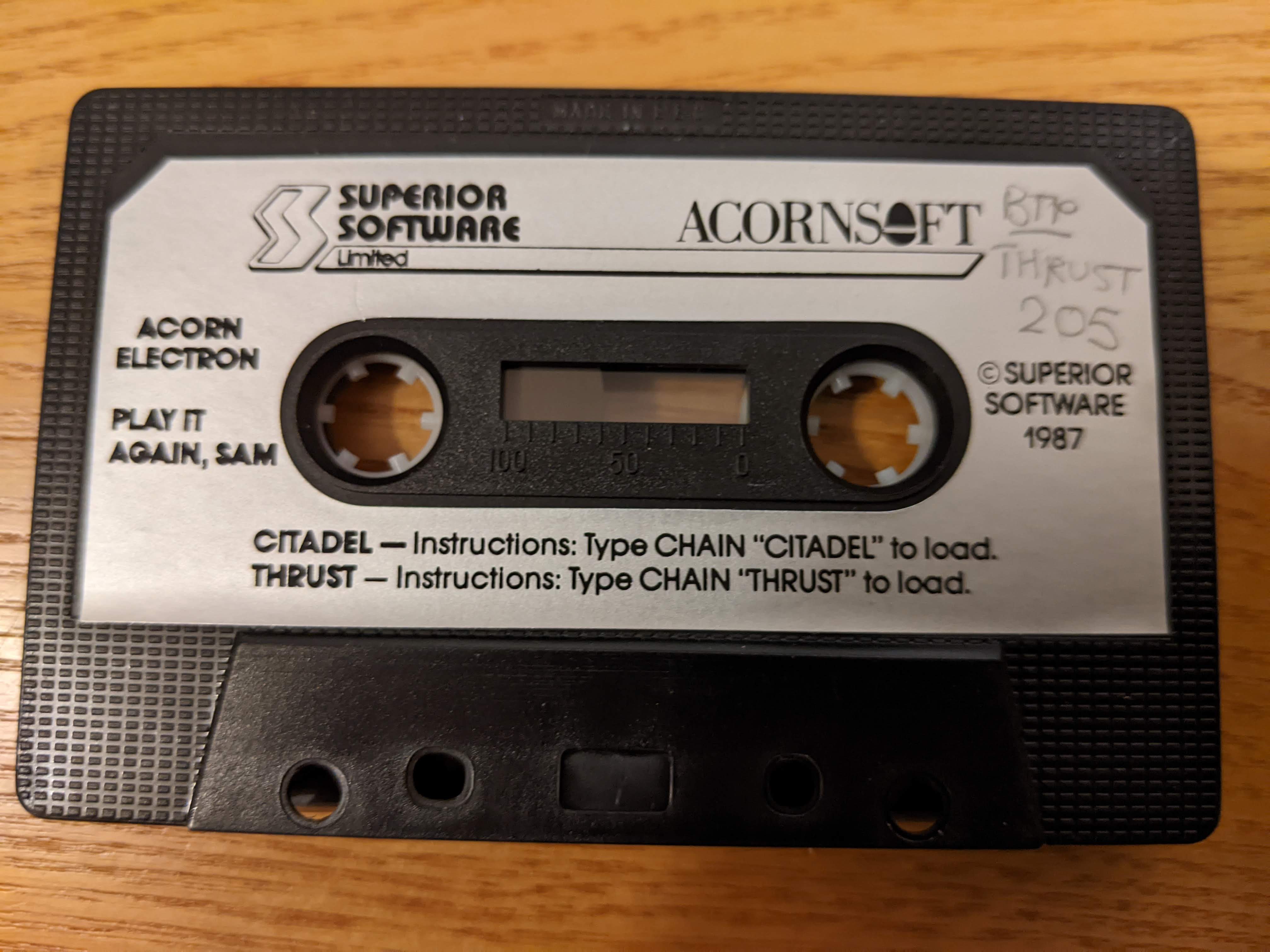 | 3 | Acorn Electron | Superior Software | Game | Thrust |