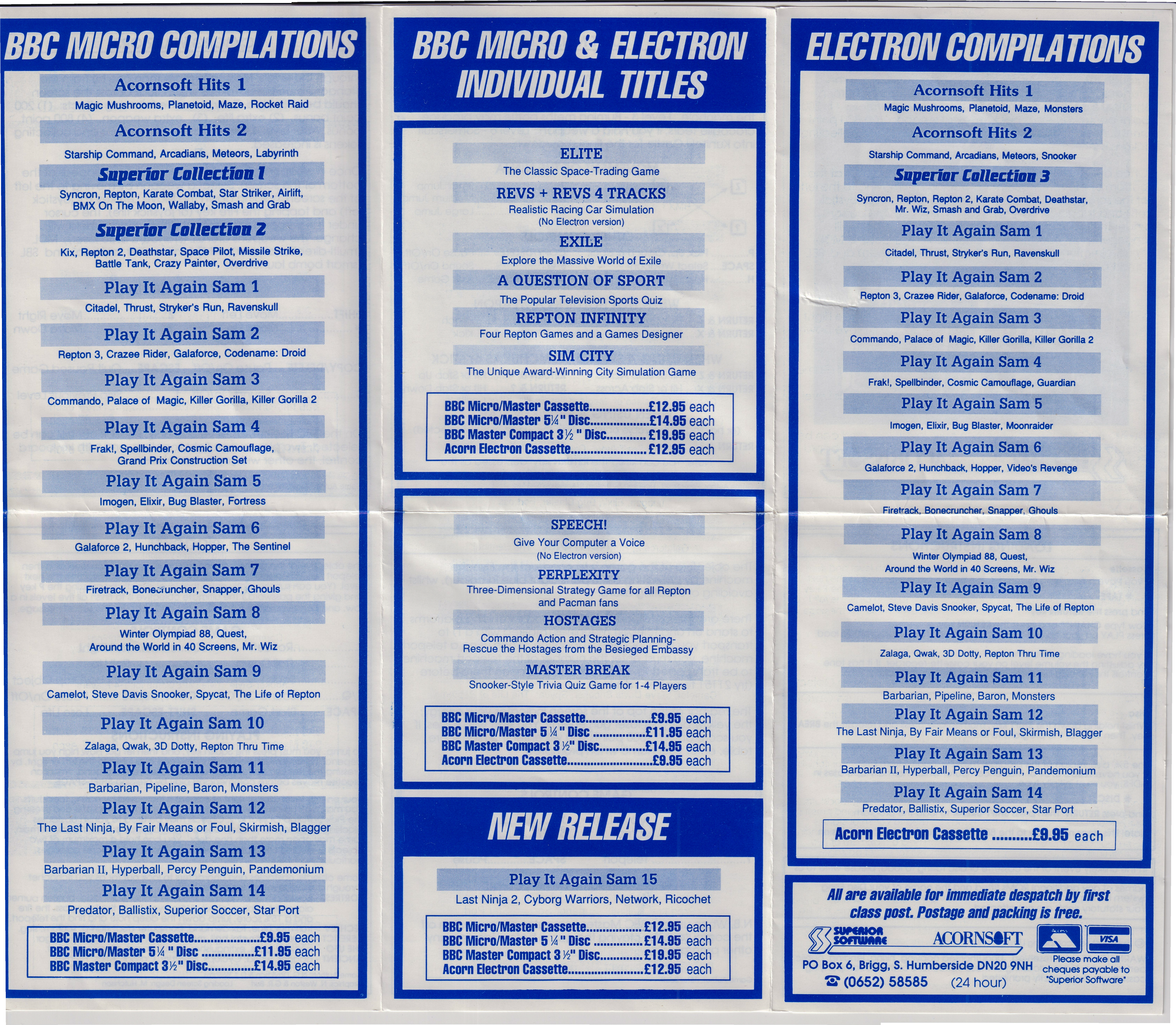 | 2 | Acorn Electron | Superior Software | Compilation | Play it Again Sam 15 |