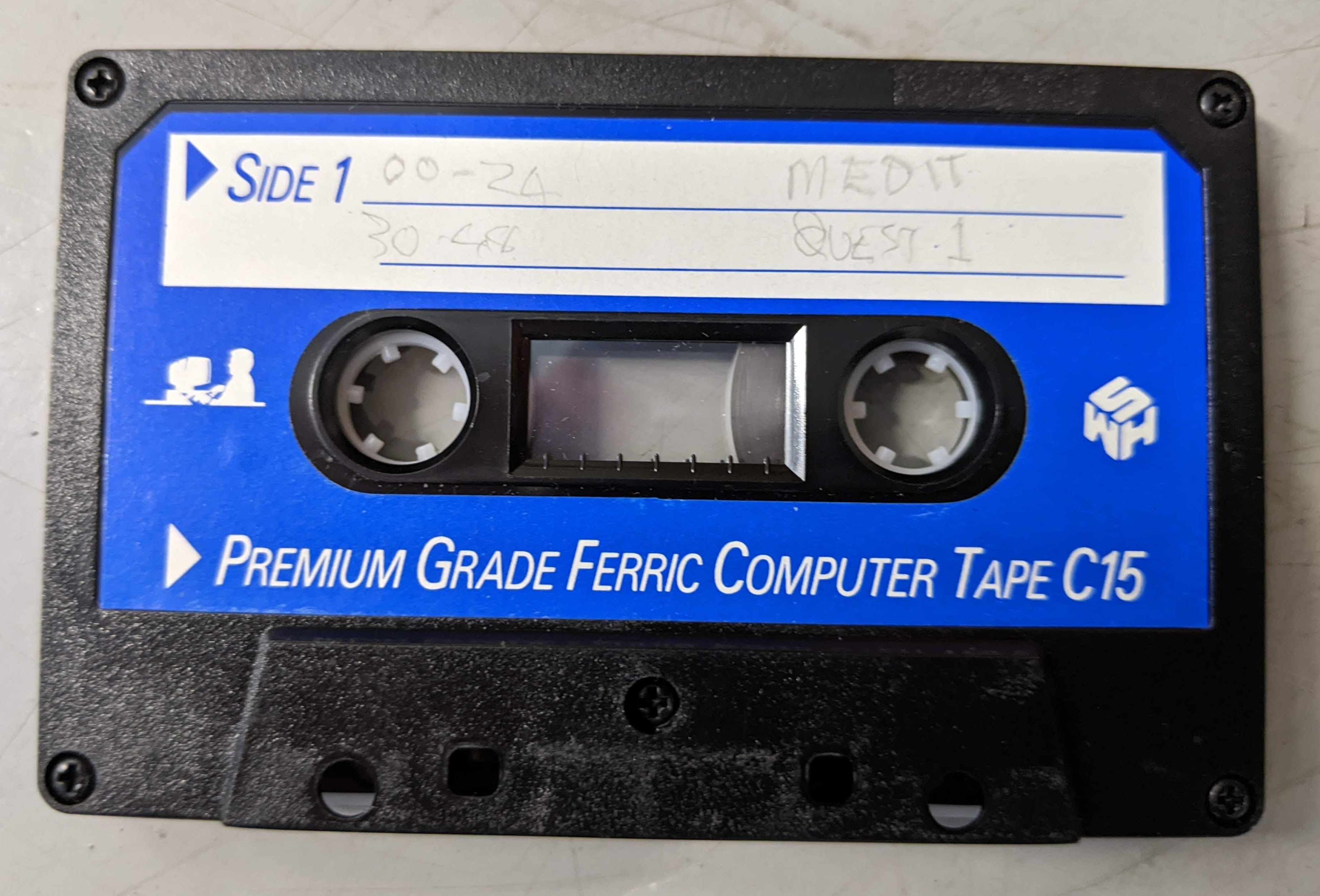 Working on <box02_tape09a_c15_acorn_medit.wav> -- number of recordings: 1 Opened </mnt/ganymede4/dcf21/cassette_archive/box02/box02_tape06a_c15_acorn_medit.wav>: 1 channels, 48000 frames/sec, length 9m47.3s Tape digitisation date: Thu Jul 28 17:24:23 2022 [Start/sec ] [End/sec ] [Stat ] [Filename ] Size LoadAddr ExecAddr NextAddr Phases Information [ 13.54596] [ 29.83592] [ PASS] [MEDIT ] 04B0 00005A00 00005A00 00000000 [--CD ] Last block 0004 complete. [ 54.87913] [ 68.54858] [ PASS] [QUEST1 ] 0400 00000E00 00000E00 00000000 [--CD ] Last block 0003 complete. [ 88.44952] [ 128.07196] [ PASS] [BackDrp ] 0B00 00000000 00000000 00000000 [--CD ] Last block 000A complete. [ 145.16769] [ 174.45271] [ PASS] [Message ] 0800 00000000 00000000 00000000 [--CD ] Last block 0007 complete. [ 190.55717] [ 200.92181] [ PASS] [Charset ] 0300 00000000 00000000 00000000 [--CD ] Last block 0002 complete. [ 218.95065] [ 326.88442] [ PASS] [D.Demo02 ] 1D00 00002AF0 00002DFA 00000000 [--CD ] Last block 001C complete. [ 349.79508] [ 393.25385] [ PASS] [DUMP1SPOOL] 0726 FFFFFFFF FFFFFFFF 00000000 [--C- ] Last block 0007 complete. Recovered 17110 bytes. Best version: </mnt/ganymede4/dcf21/cassette_archive/box02/box02_tape06a_c15_acorn_medit.wav>