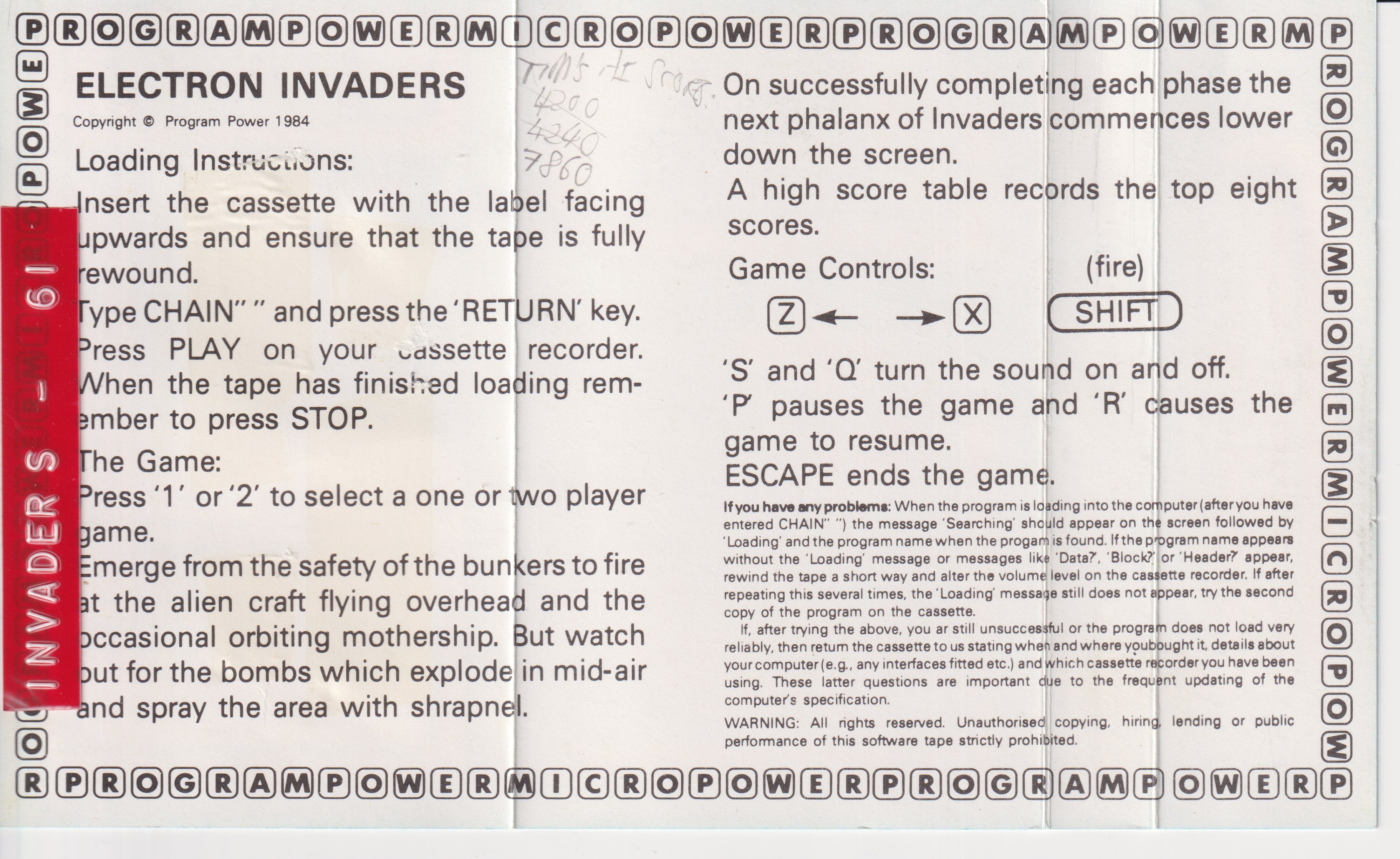 | 1 | Acorn Electron | Micropower | Game | Electron Invaders |