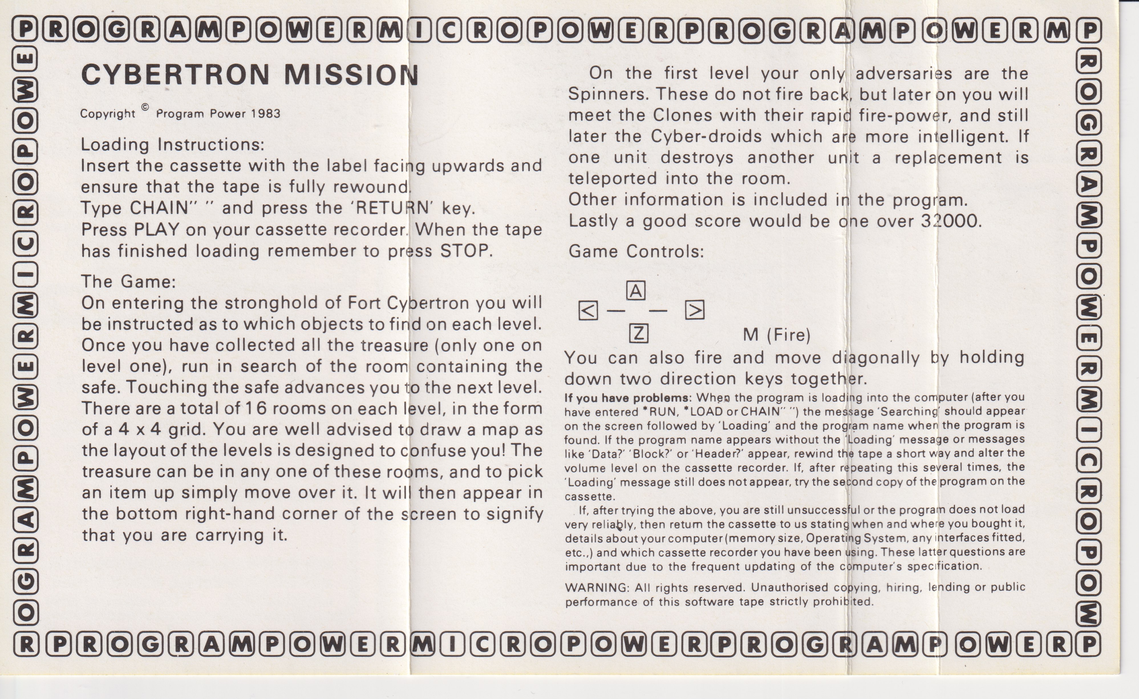 | 1 | Acorn Electron | Program Power | Game | Cybertron Mission |