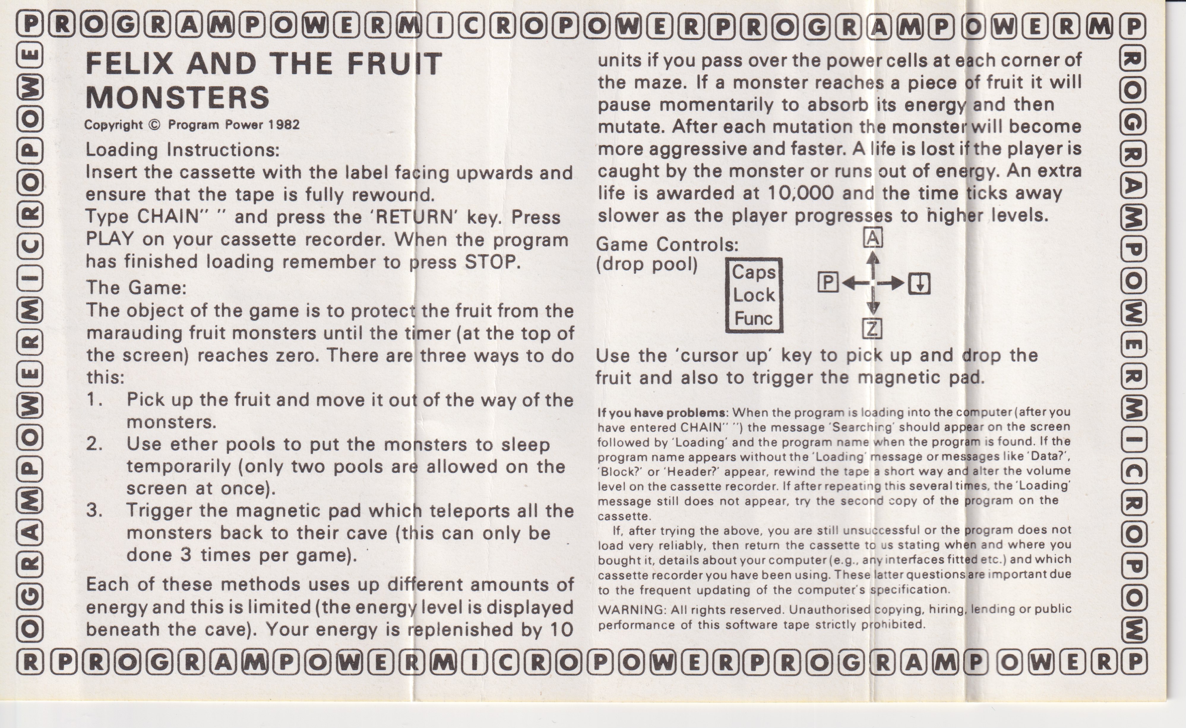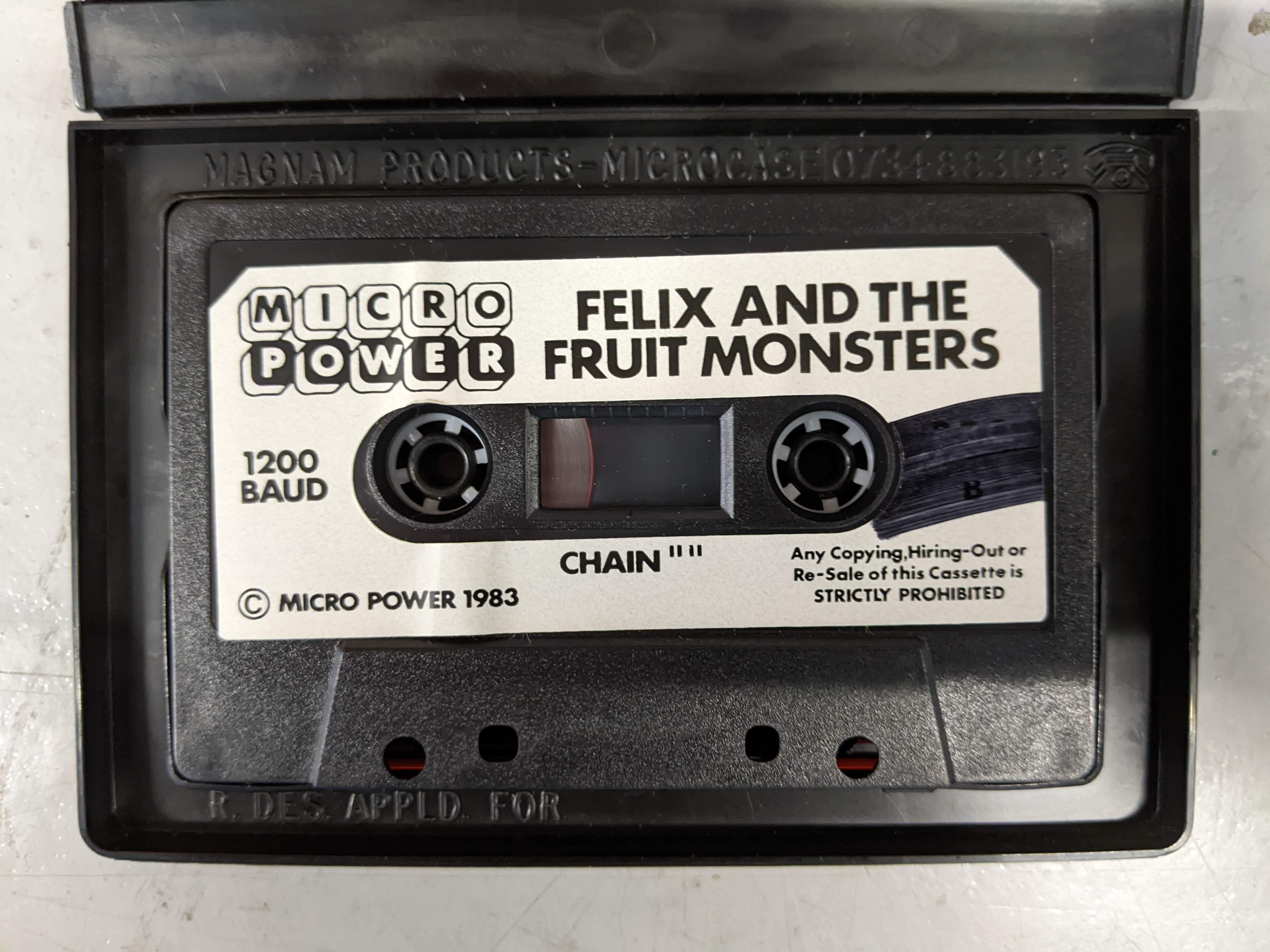 | 1 | Acorn Electron | Program Power | Game | Felix & The Fruit Monsters |