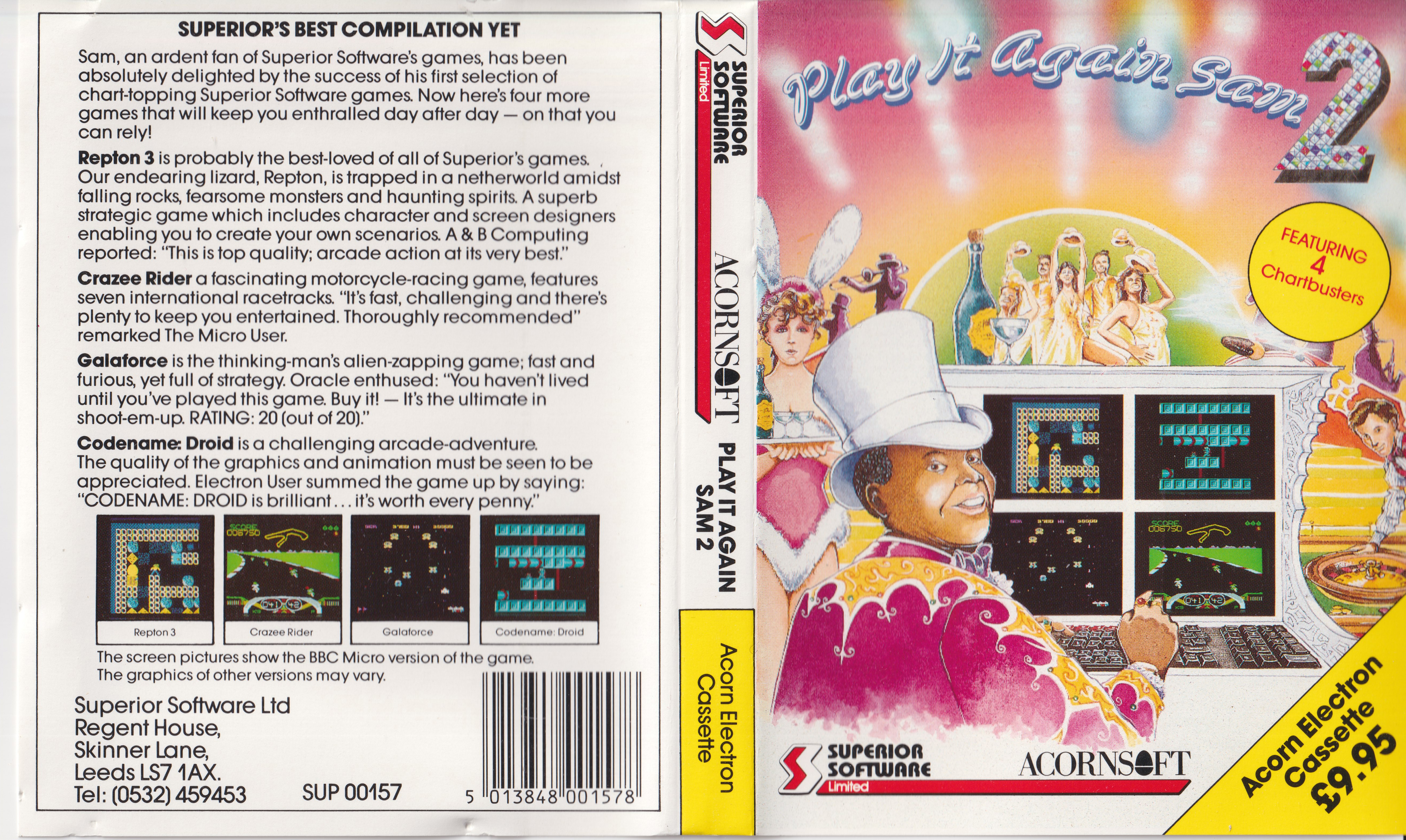 | 2 | Acorn Electron | Superior Software | Compilation | Play it Again Sam 2 |